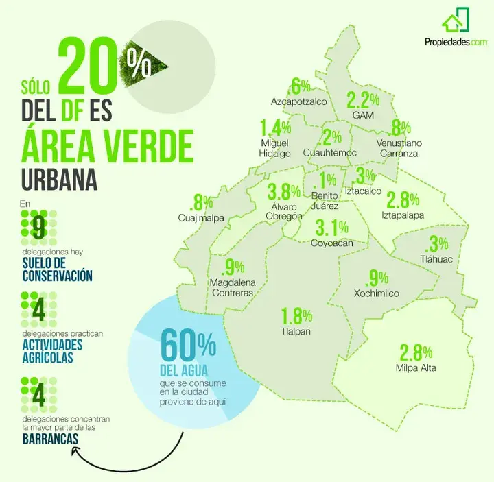 ¿Qué porcentaje de áreas verdes hay en tu delegación?