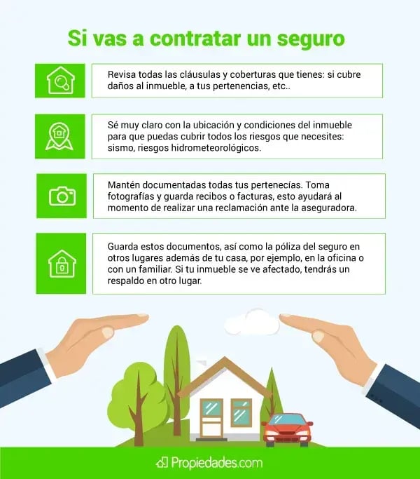“Si solamente cubre el inmueble, debes preguntar cómo incluir los contenidos. Si ya son productos armados, entonces tendremos que ir por nuestra cuenta a preguntar a alguna compañía de seguros que nos ofrezca el mismo producto de casa-habitación, pero para los contenidos”, señaló el experto.