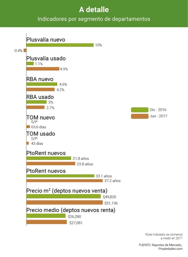 “Dada la tendencia negativa de los departamentos nuevos se puede ver que esta es una opción de inversión menos atractiva, sobre todo si la comparamos con los niveles observados durante 2016”, indicó González.